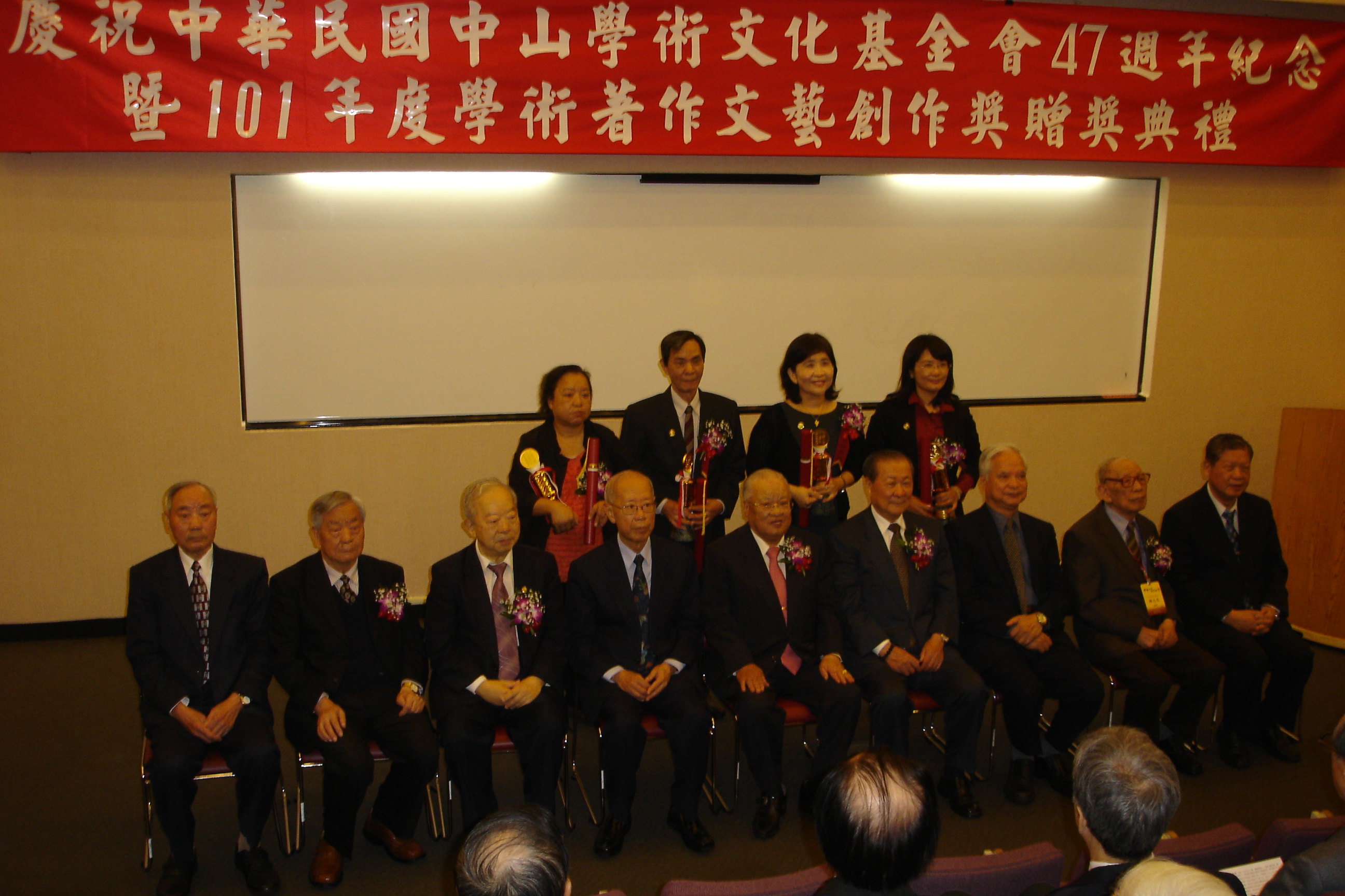 於101年11月11日(星期日)假台北市國父紀念館舉行「慶祝中華民國中山學術文化基金會47周年紀念暨101年度學術著作文藝創作獎贈獎典禮」。